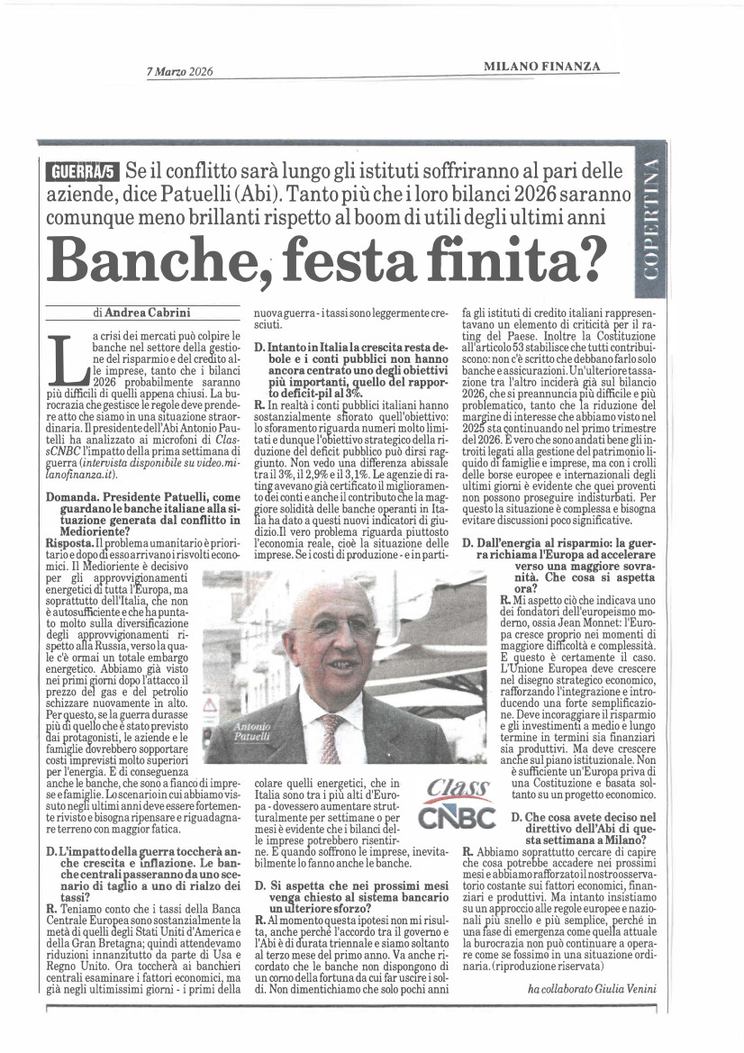 Intervista del Presidente Patuelli a Milano Finanza
